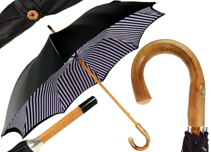 Çadër klasike me vija për meshkuj – dorezë bambuje