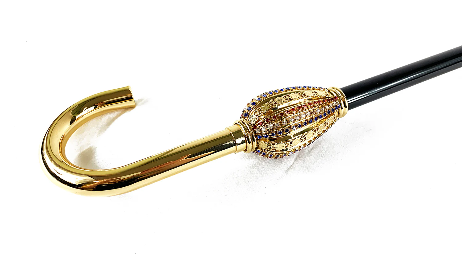 Një shkop luksoz tunxhi i punuar me dorë, i zbukuruar me elementë Filigrani dhe Swarovski me tri ngjyra.
