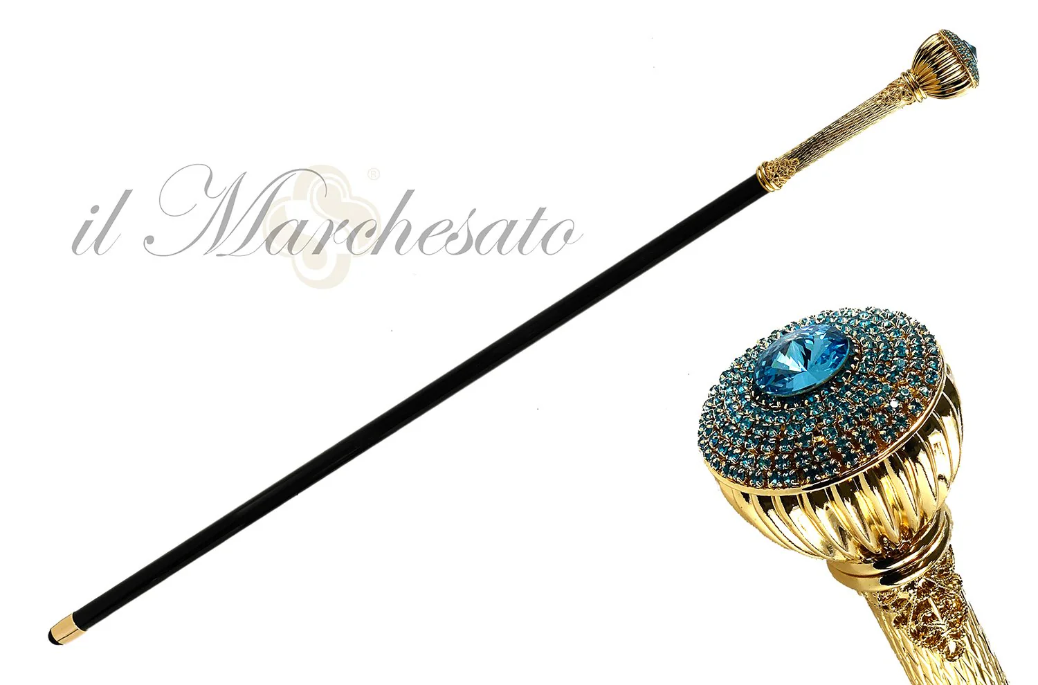 Shkop elegant i pasur me rhinestones akuamarin, vini re gurin e madh Swarovski.