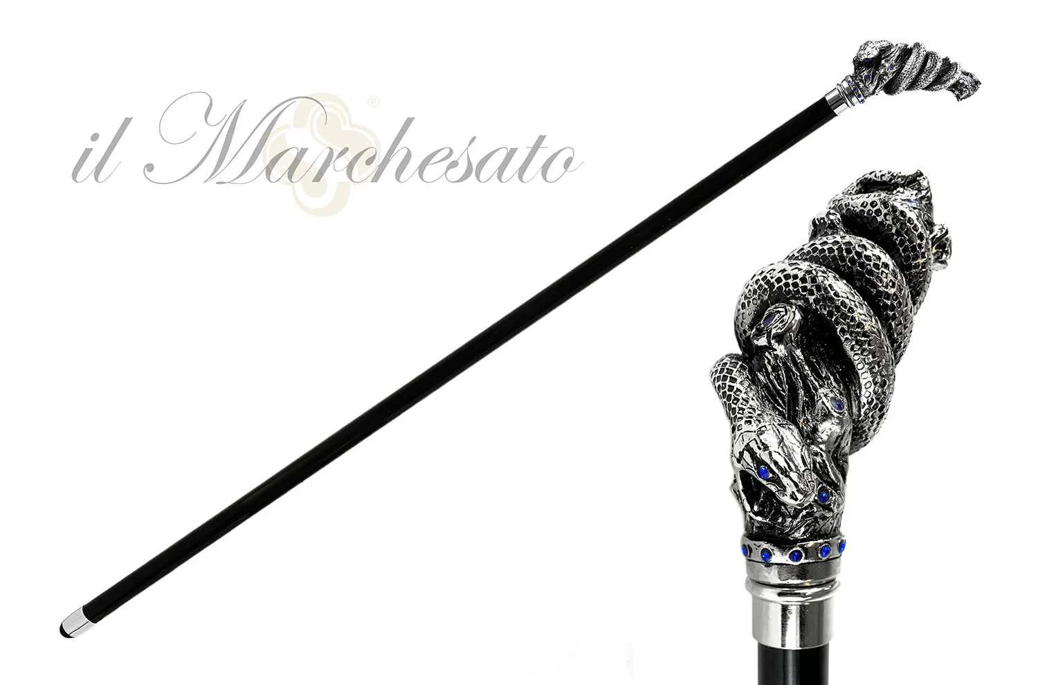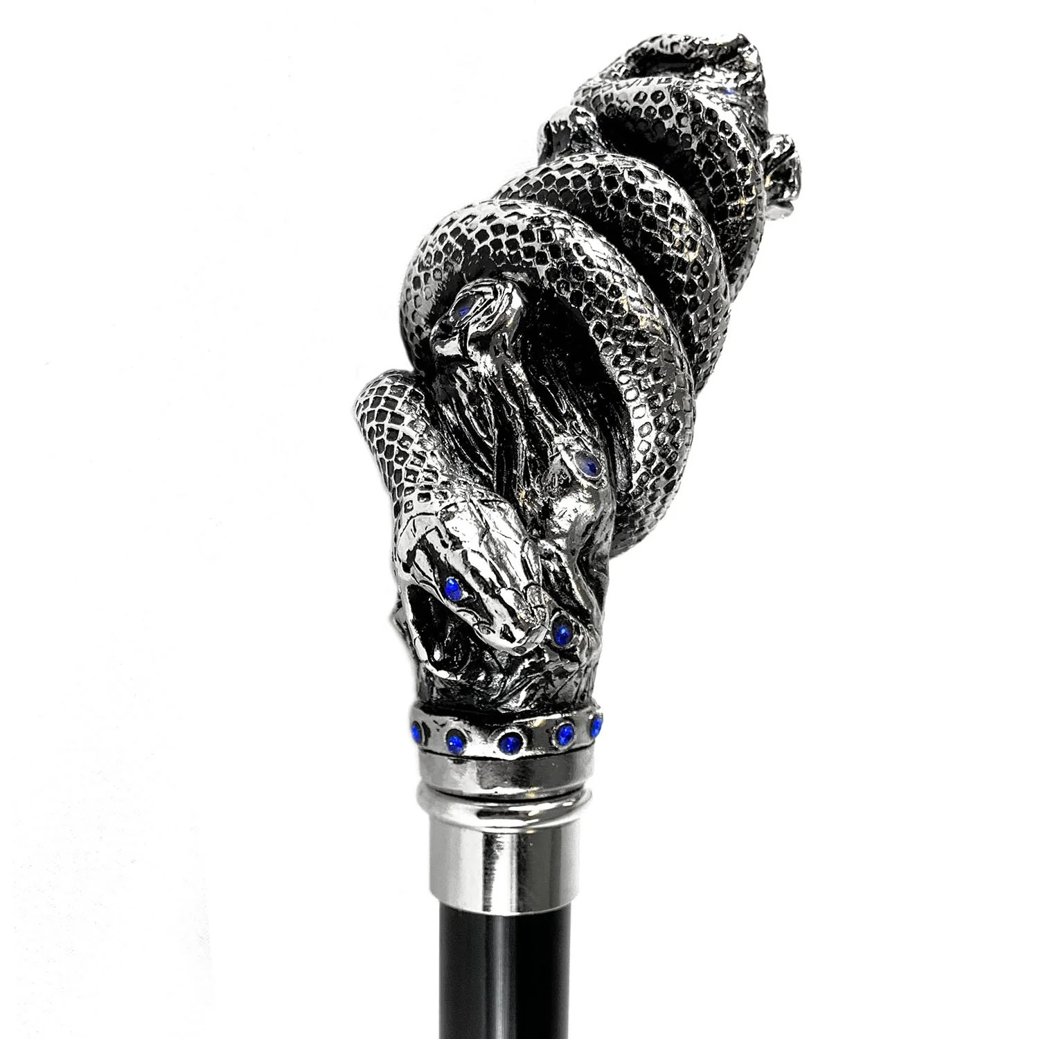 Gjarpër luksoz i argjendtë në degë me kristale safiri