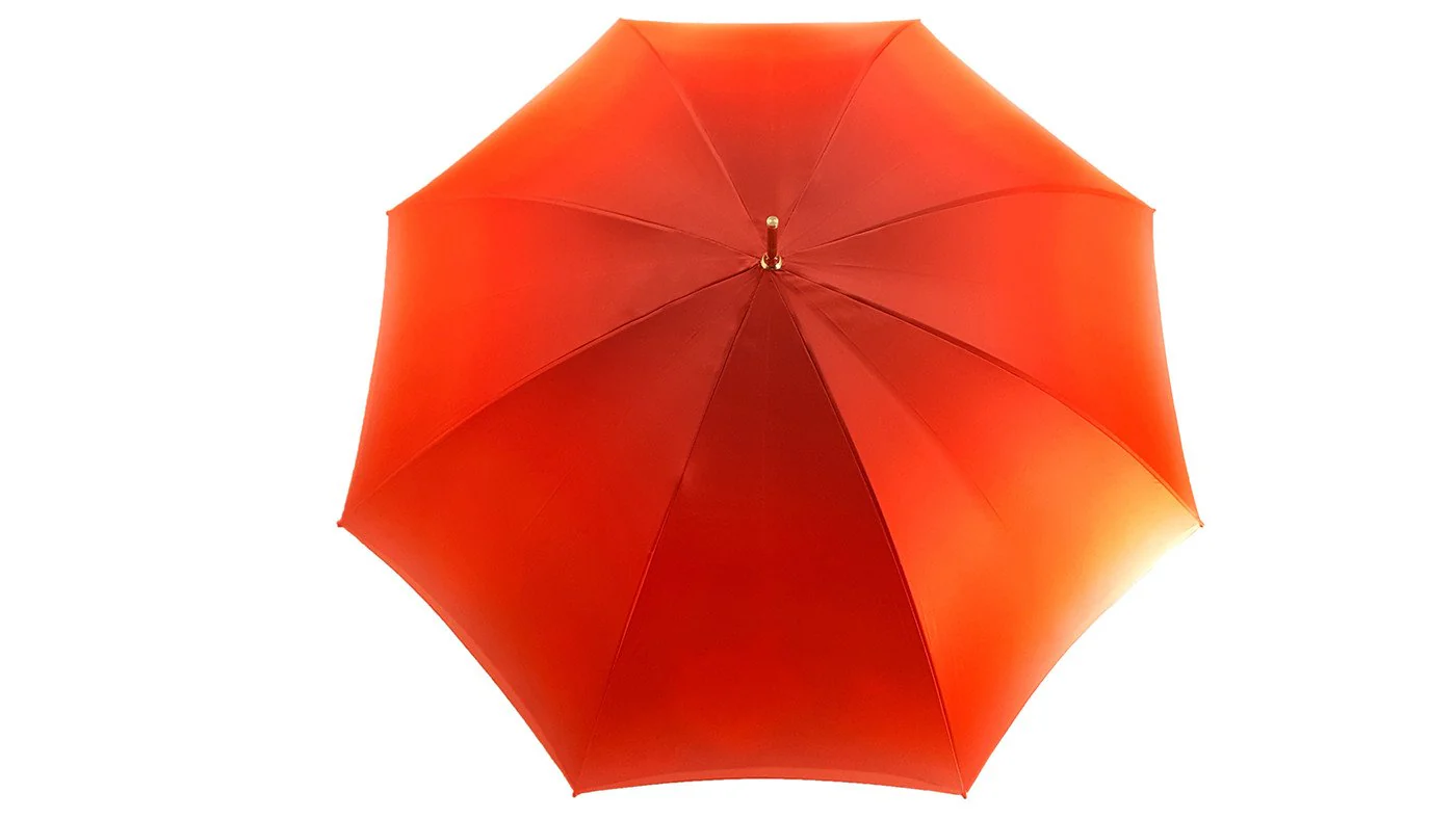 Mbulesa e jashtme prej sateni me ngjyrë portokalli gradient me një pëlhurë sateni të brendshme me printime me pupla.