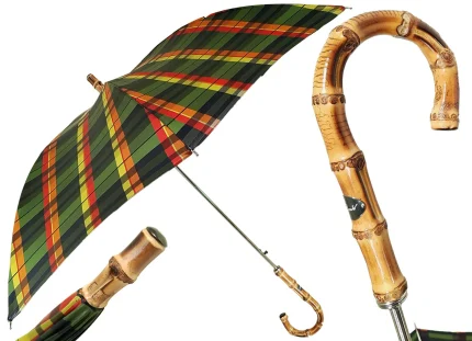 Kjo ombrellë është prodhuar në Itali tërësisht me dorë dhe e përfunduar mirë në detajet më të vogla. Vini re dorezën origjinale të rrënjës natyrale të gështenjës. Pjesa e brendshme është zbukuruar me përfundime të qepura me dorë dhe brinjë çeliku të bëra me një zanat të lashtë. Çadra mund të përdoret si shkop ecjeje.