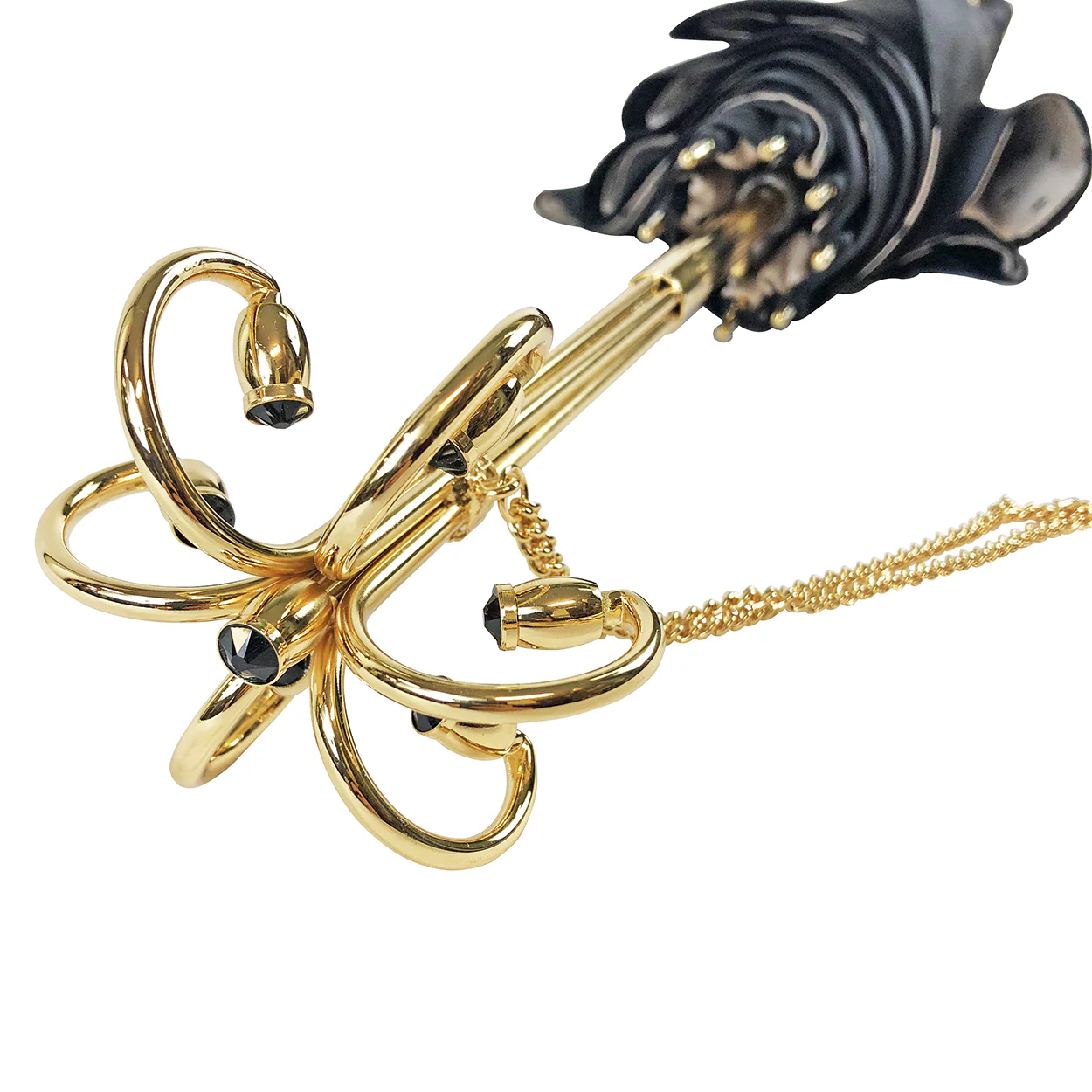 : Dorezë e punuar me dorë me kristal të zi Swarovski – 24K i artë