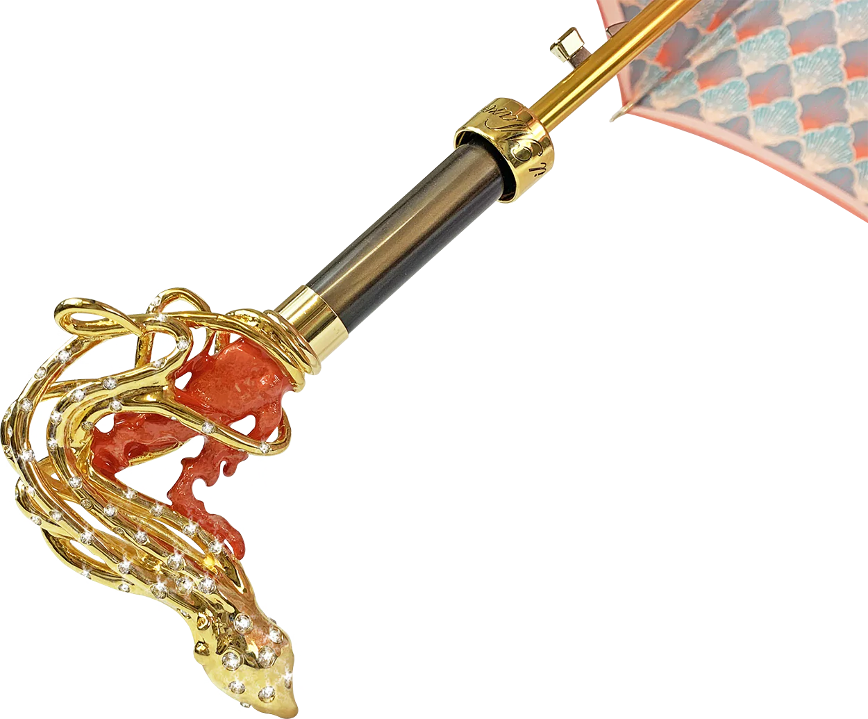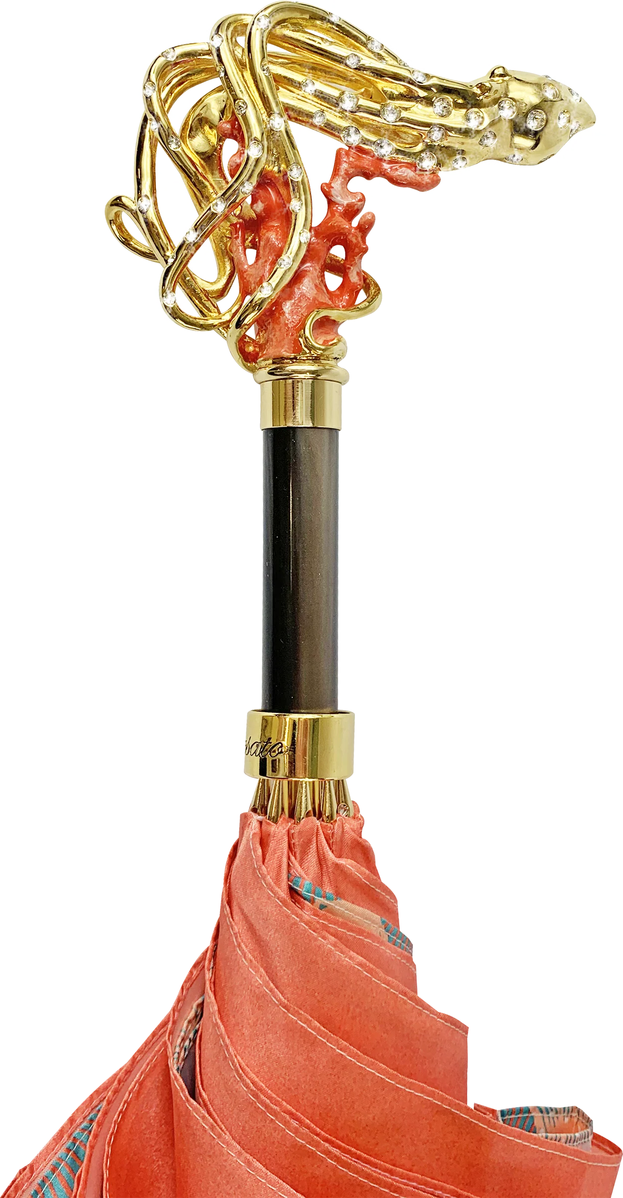 Ombrellë për femra nga koleksioni ynë Premium me dizajn ekskluziv “35fili” brenda, ngjyrë elegante korale nga jashtë