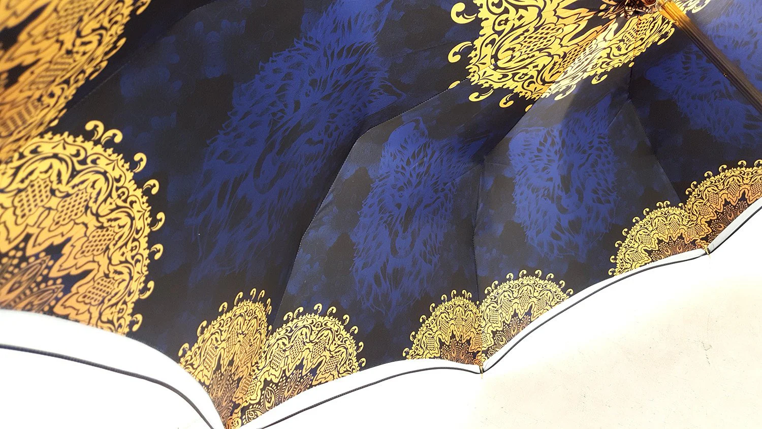 Çadër e mrekullueshme për femra e punuar me dorë, e përfunduar me një pëlhurë luksoze poliestër saten, me një dizajn ekskluziv të printuar brenda .