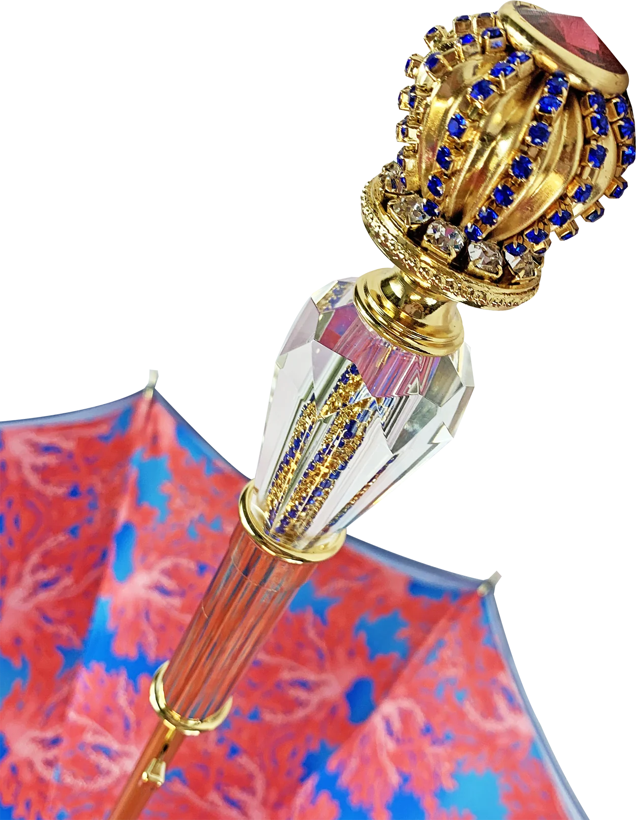 : E punuar me dorë me kristale blu, rozë dhe të bardhë të mëdhenj – Ari 24K