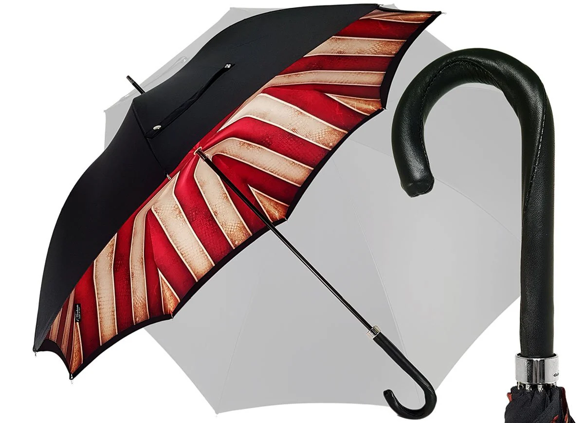 Kjo ombrellë elegante për zotërinj është ideale për ata që kërkojnë diçka pak më ndryshe. Kjo ombrellë ka një tendë të dyfishtë të bërë nga poliesteri më i mirë italian i ngjashëm me mëndafshin. Ai gjithashtu përmban një kornizë metalike me ngjyrë të zezë dhe në krye është një dorezë lëkure e zezë e bukur