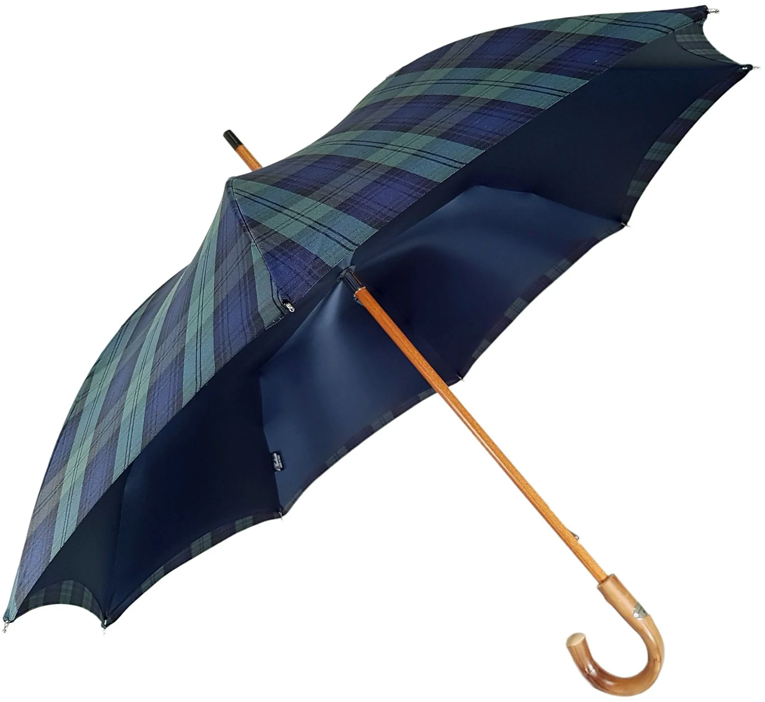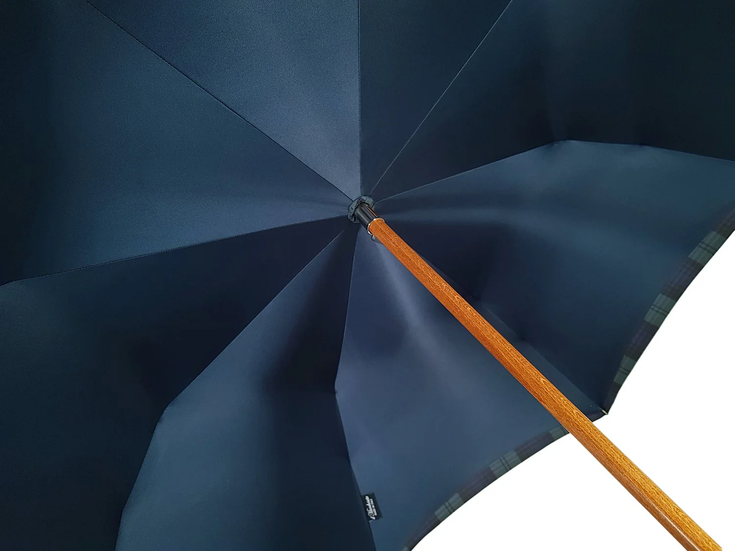 Kjo ombrellë me pëlhurë të dyfishtë Il Marchesato përmban një brinjë me tendë 63 cm. Mbulesa e jashtme elegante prej pambuku e bën këtë një ombrellë elegante, vini re pëlhurën e brendshme të shijshme blu prej sateni të naftës dhe dorezën e madhe të drurit të gështenjës që e bëjnë atë një copë të vërtetë. Një kënaqësi për ta përdorur atë në shi.