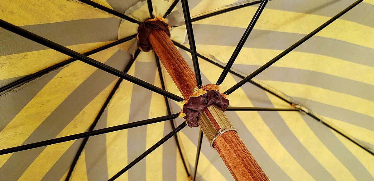 Çadër e madhe me tendë klasike dhe elegante e mbuluar me pëlhurë të cilësisë së lartë, hapje dhe mbyllje manuale, E LAKUAR NGA NJË POP DRU, dorezë gështenjë natyrale dhe bosht me diametër (20 mm – 0,78 in), me tapë për të parandaluar dëmtimin e erës.