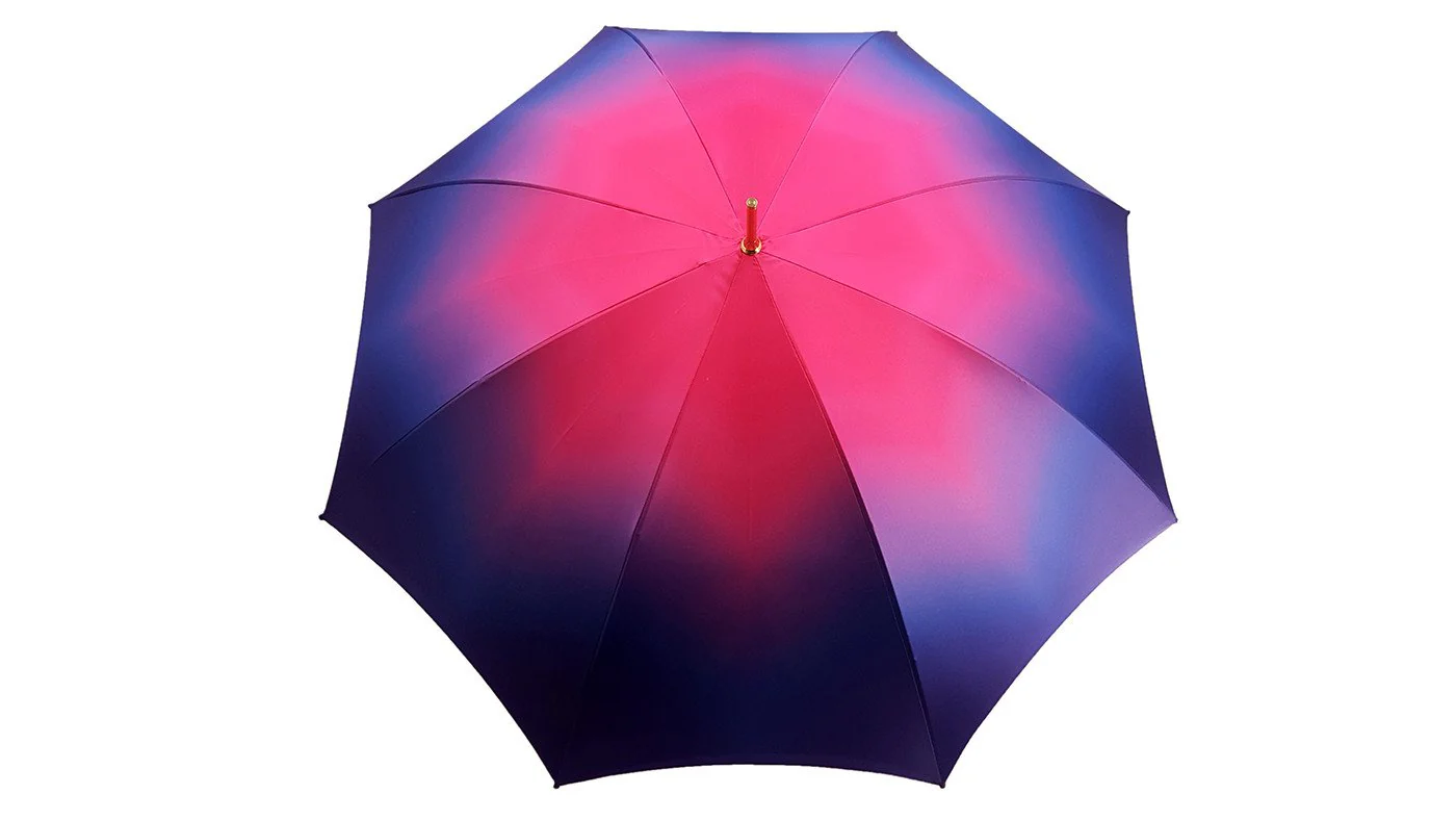 Mbulesa e jashtme prej sateni me ngjyrë gradient blu dhe rozë me një pëlhurë sateni të brendshme me printe me pupla.