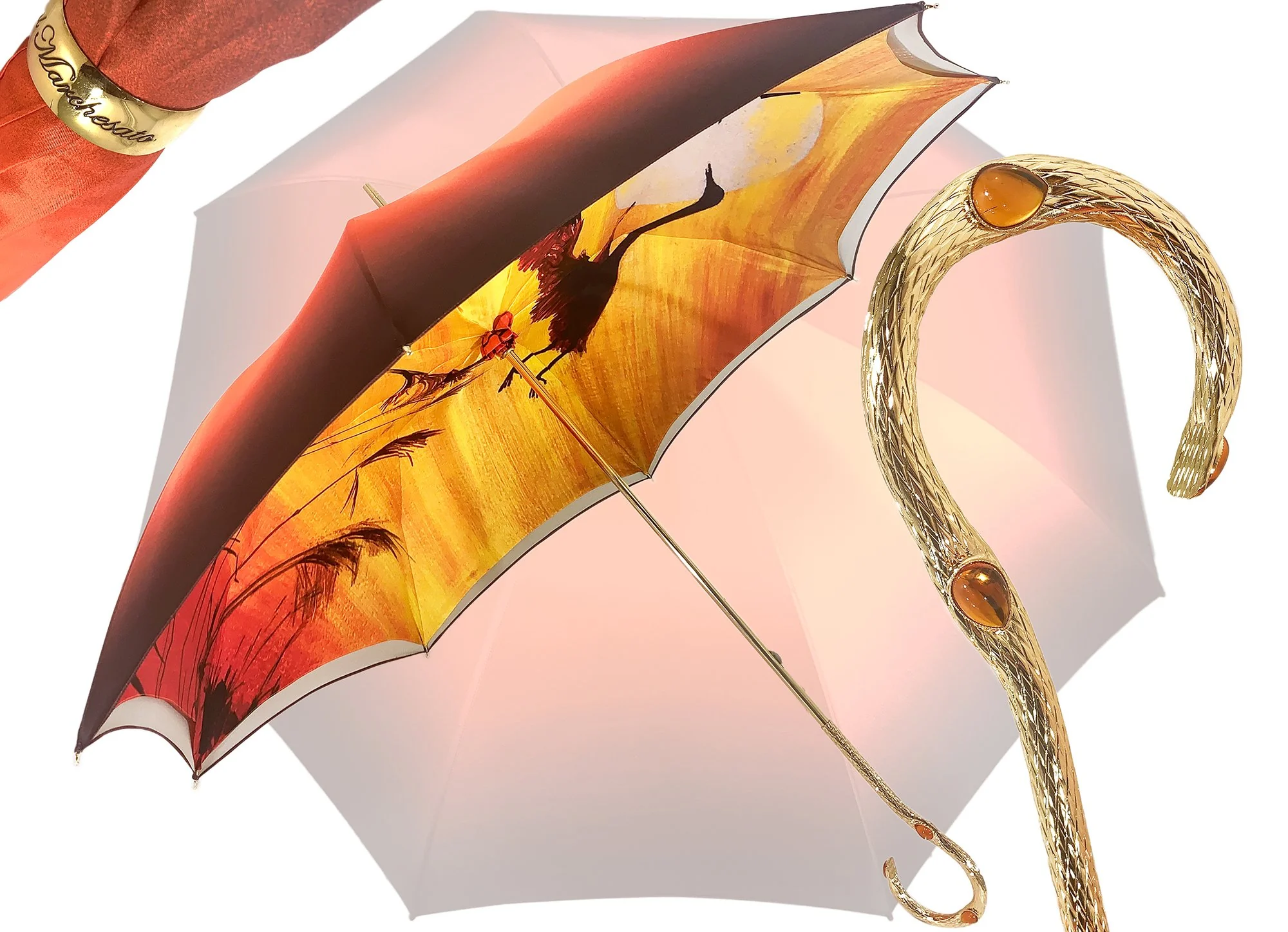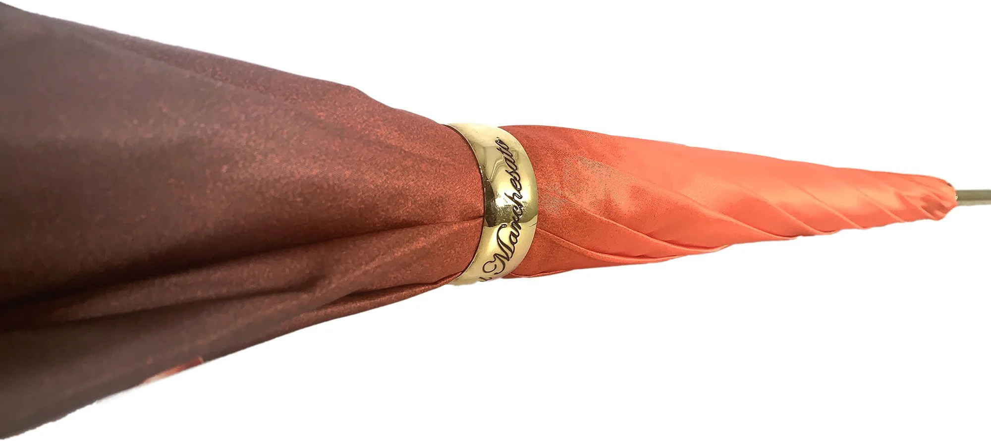 Vlen të theksohet doreza e artë e mbushur me rhinestones. Çadra mbyllet duke përdorur një unazë të bukur të artë, duke eliminuar nevojën për një lidhëse. Një ide e shkëlqyer për dhuratë!