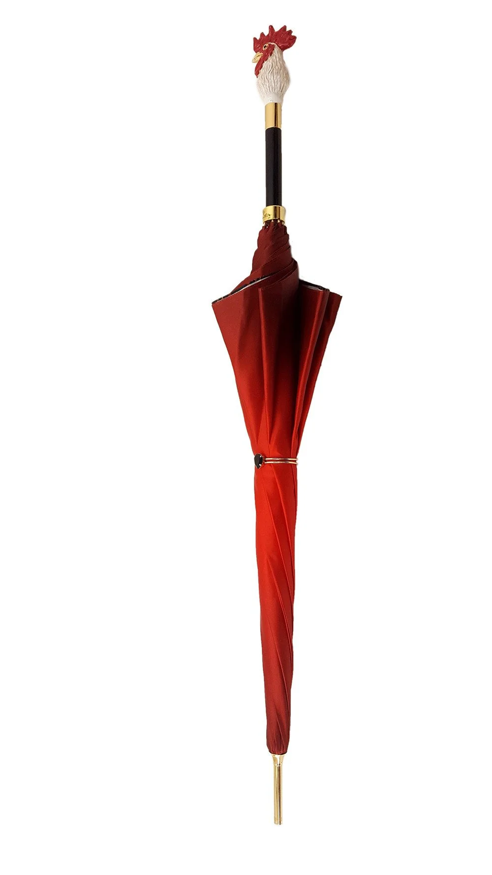 Çadra elegante me ngjyrë të kuqe, me një kanopi satin të jashtëm dhe një material satin të brendshëm me print gjel