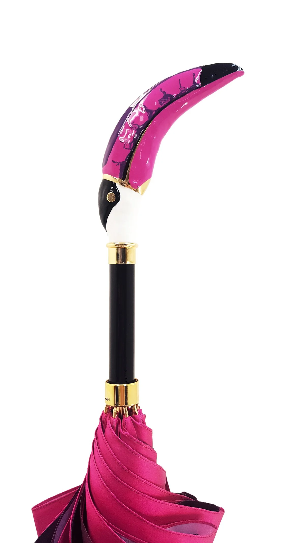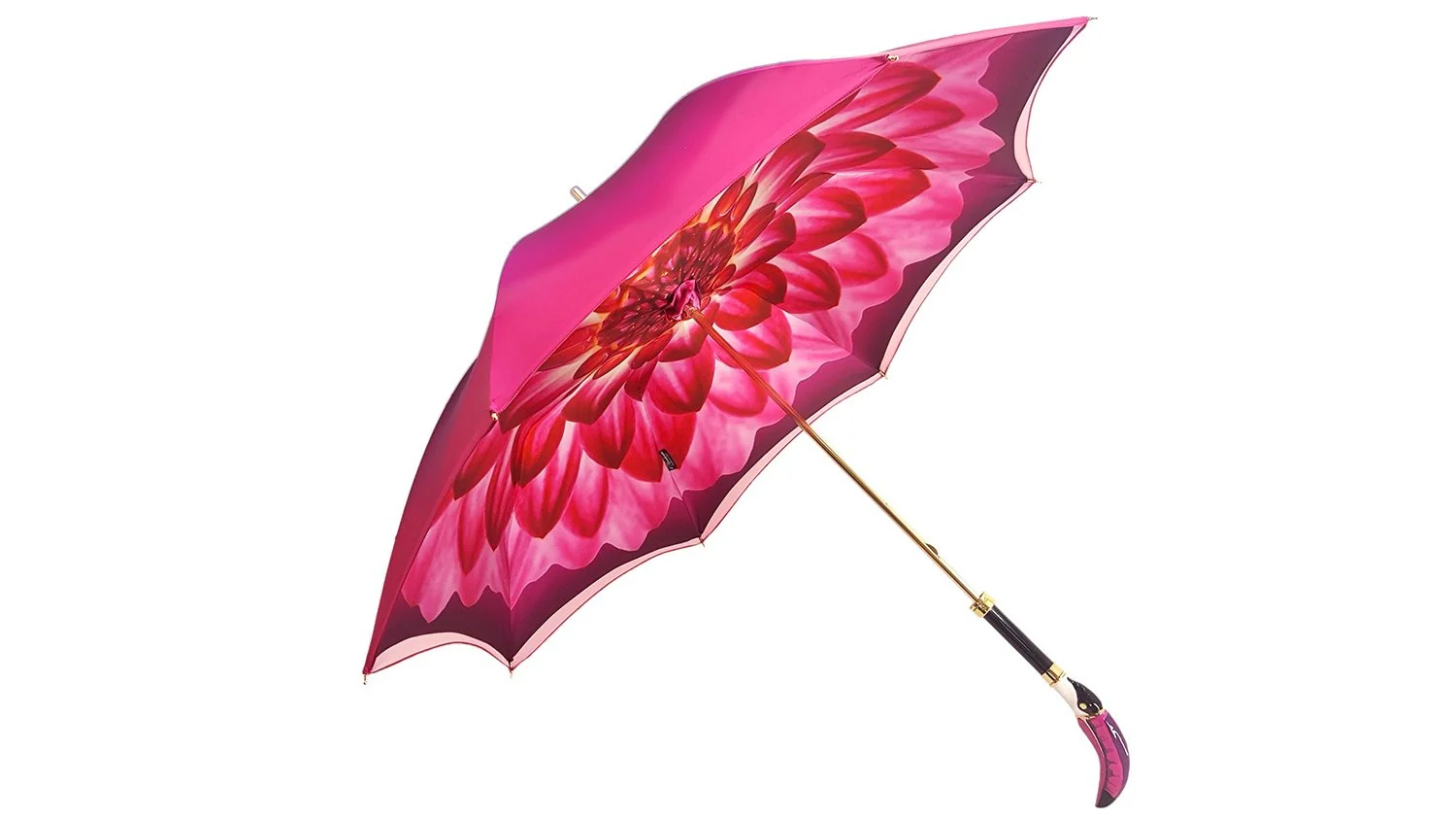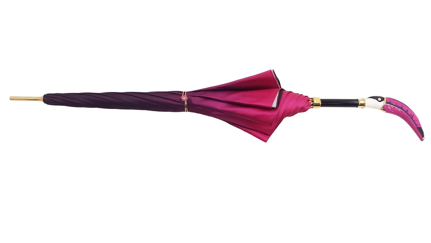 Çadër e mrekullueshme për gra, punuar me dorë, e përfunduar me një pëlhurë të hollë saten poliester me gradient fuchsia, me një dizajn FANTASTIK LULESH të printuar nga brenda.