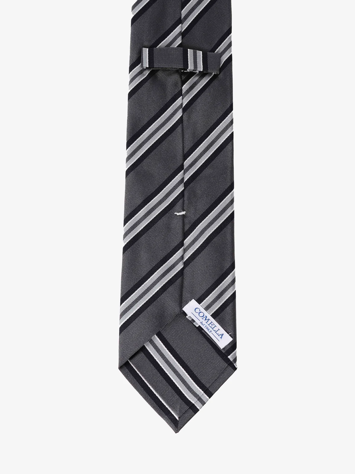 Kravata jonë trepalëshe është tërësisht e punuar me dorë nga artizanët tanë, të cilët e vazhdojnë këtë art historik napolitan me pasion dhe precizion. Butësia e mëndafsheve dhe vertikaliteti i përsosur kur vishen e bëjnë kravatën tonë trepalëshe një ikonë të vërtetë stili, duke theksuar më tej angazhimin tonë ndaj Made in Italy. Çdo model dhe çdo ngjyrë mban firmën e shijes së mirë të Cavalier Davide Comella.